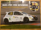 "Es war so als wäre er nie weg gewesen! Nachdem Marc-Uwe von Niesewand im vergangenen Jahr die Meisterschaft im Renault Clio Cup Bohemia gewonnen hatte, entschloss sich der 30-jährige Motorsportler aus Farmsen im letzten Winter, neben seinen neuen Karriereplänen nur noch sporadisch die ehemaligen Kollegen des französischen Markenpokals zu besuchen. Doch obwohl er mehr als ein halbes Jahr lang nicht mehr in seinem ca. 210 PS starken Renault Sport Clio RS III gesessen hatte, gehörte er auf seiner Lieblingsstrecke, der Nürburgring-Nordschleife, in allen Trainingssitzungen zu den schnellsten Piloten und musste sich im Rennen als Zweitplatzierter am Ende nur ganz knapp geschlagen geben."